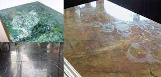 Vết ố do dầu mỡ: Tương tự, dùng bột talc hoặc bột mì trộn với cồn/aceton, đắp lên vết ố để hút dầu.nếu tình trạng quá nặng thì bạn cần phải gọi một đơn vị chuyên nghiệp về dịch vụ đánh bóng sàn đá